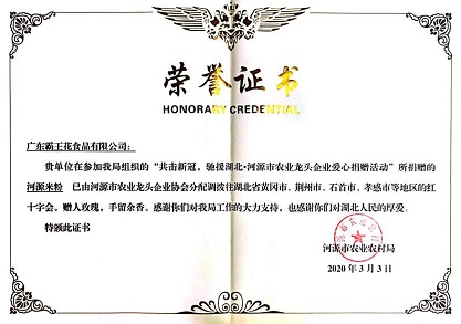 公司始終堅(jiān)持“用良心打造放心食品,以責(zé)任贏得社會(huì)尊重”的理念,熱心社會(huì)公益事業(yè),帶動(dòng)農(nóng)戶增產(chǎn)增收,積極回報(bào)社會(huì)——截止2022年底,先后為河源市新人民醫(yī)院、河源職業(yè)技術(shù)學(xué)院教學(xué)樓、東源縣東江中學(xué)、東源縣燈塔中學(xué)建設(shè)、河源“6.20”洪災(zāi),汶川“5.12大地震”、“6.30廣東扶貧濟(jì)困日”等各項(xiàng)公益事業(yè)捐款捐物達(dá)7000多萬元,先后資助600名優(yōu)秀貧困學(xué)子完成學(xué)業(yè),累計(jì)安排1000多名下崗工人和退伍軍人再就業(yè),以“公司+基地+農(nóng)戶”的形式直接帶動(dòng)10000多戶農(nóng)戶增產(chǎn)增收,各種善舉贏得了社會(huì)各界的高度好評(píng)。